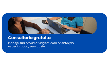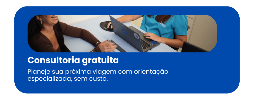 Oferecemos emissão de passagens, roteiros, pacotes, hospedagem, seguro viagem, aluguel de carro e suporte completo antes, durante e depois da sua viagem.